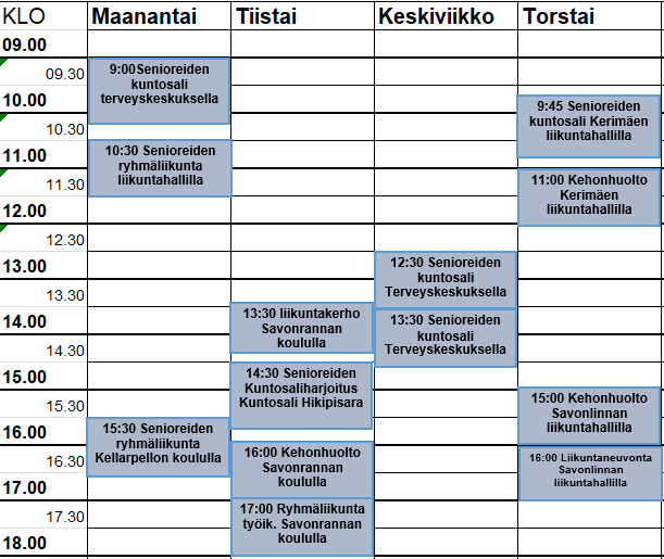 Savonlinnan kaupungin liikuntatoimi järjestää erilaisia ohjattuja liikuntaryhmiä eri puolilla kaupunkia.