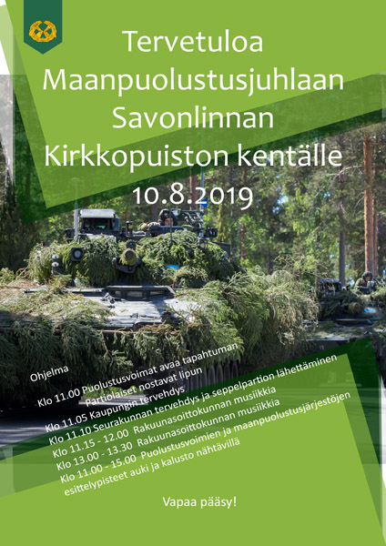 Karjalan prikaatin Etelä-Savon aluetoimisto järjestää Savonlinnan kaupungin kanssa maanpuolustusjuhlan, johon kaikki ovat tervetulleita.