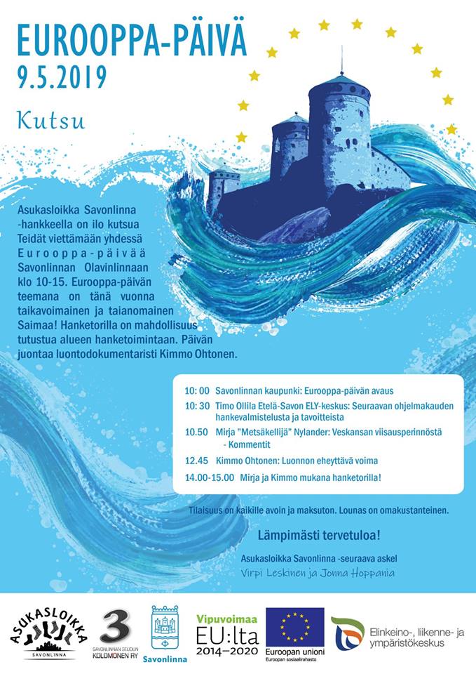 Asukasloikka Savonlinna -hanke kutsuu viettämään Eurooppa-päivää Olavinlinnaan torstaina 9.5. klo 10-15. Teemana on taikavoimainen ja taianomainen Saimaa!