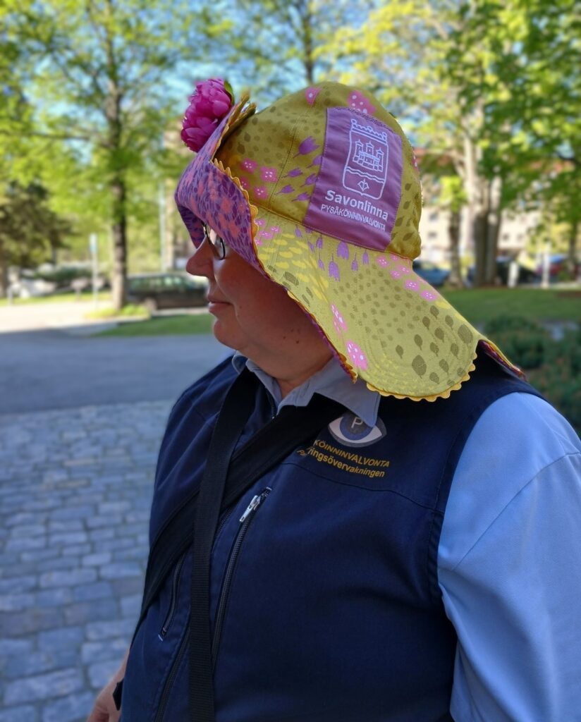 Myös pysäköinnintarkastajamme ovat valmiina kesään. Aurinkoiseen päivään sopivan lierihatun on suunnitellut ja valmistanut paikallinen Ateljee Kaisa Turtiainen. Pieni ele, iso ilo kaupungin katukuvassa!