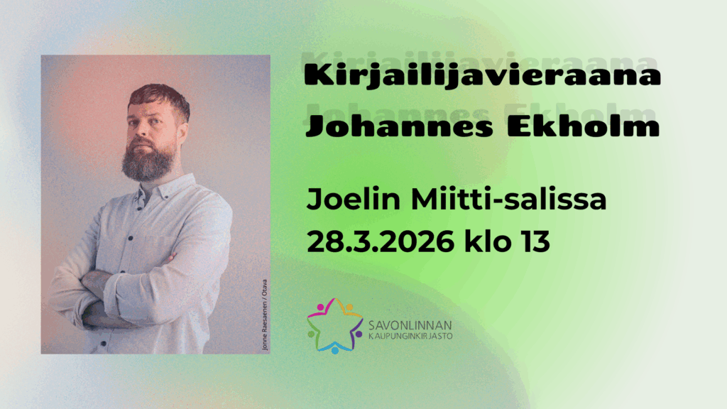 keskiviikkona 4. helmikuuta 2026Savonlinnaan kotiutunut kirjailija Johannes Ekholm on vieraana Savonlinnan pääkirjasto Joelin Miitti-tilassa lauantaina 28.3.2026 klo 13.00–14.00.