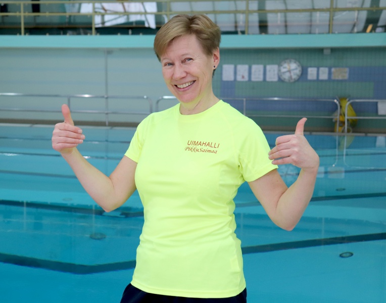 Uimaopettaja-uinninvalvoja Minna Tarnanen toivottaa kaikki tervetulleeksi remontoituun uimahalliin!