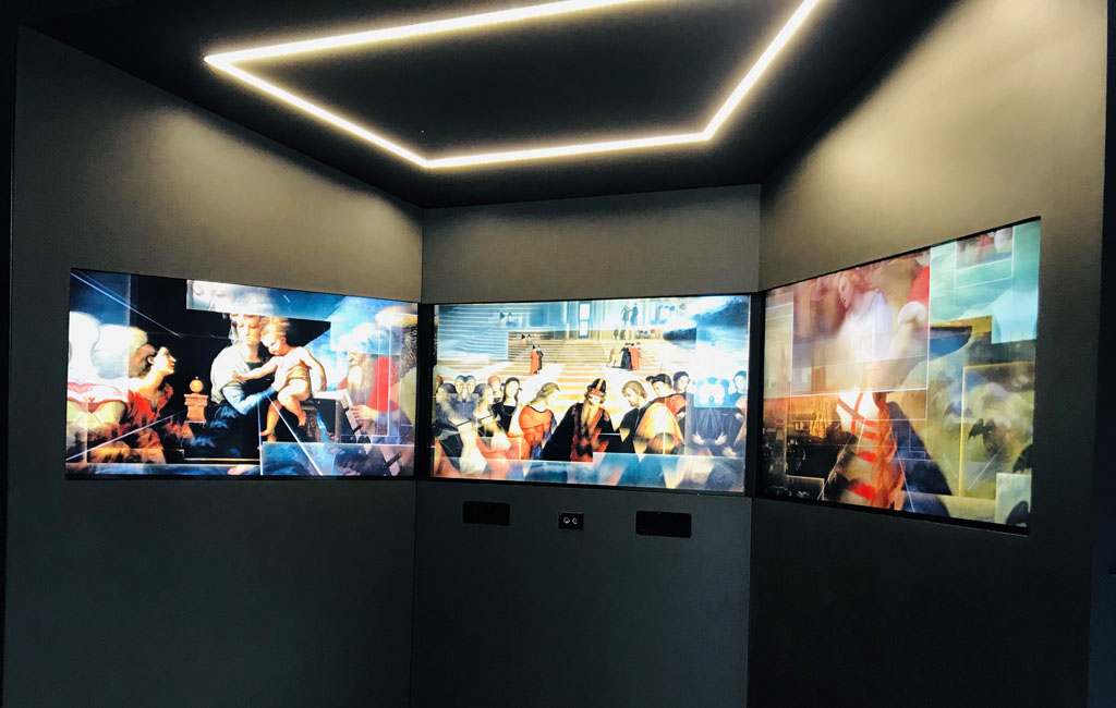 Taustavalaisujärjestelmä ja erityinen tukirakenne mahdollistavat teosten katsomisen mistä tahansa suunnasta. Itse teosten lisäksi näyttelykokonaisuuteen kuuluu interaktiivinen multimediapiste, jossa näyttelykävijät voivat tutustua tarkemmin Rafaelin elämään ja teoksiin.