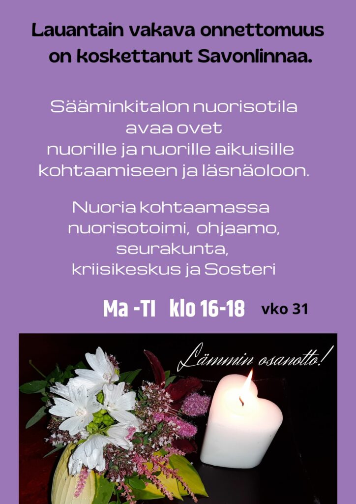 maanantaina 1. elokuuta 2022Lauantain vakava onnettomuus on koskettanut koko Savonlinnaa.