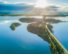 | Savonrannan Paasivesi on yli 10-kilometrinen meteoriittikraateri, joka on kiinnostanut jopa ufo-tutkijoita. | Jääkausi on muovannut Punkaharjun harjualueen. (Kuva: Visit Saimaa, kuvaaja: Jussi Silvennoinen) | Pihlajaveden historiaan kuuluu höyrylaivat ja saaristolaiskulttuuri. Pihlajavedellä on tuhansia saaria. | Kerimäellä on maailman suurin puukirkko sekä Raikuun salpa-asema ja betonibunkkerit. |