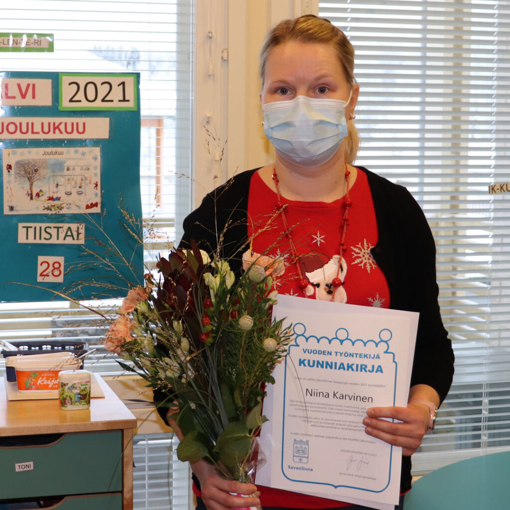 Vuoden työntekijäksi 2021 valittiin varhaiskasvatuksen lastenhoitaja Niina Karvinen Anttolan päiväkodista. Vuoden työntekijän valinta tehtiin Savonlinnan kaupungilla nyt toista kertaa.