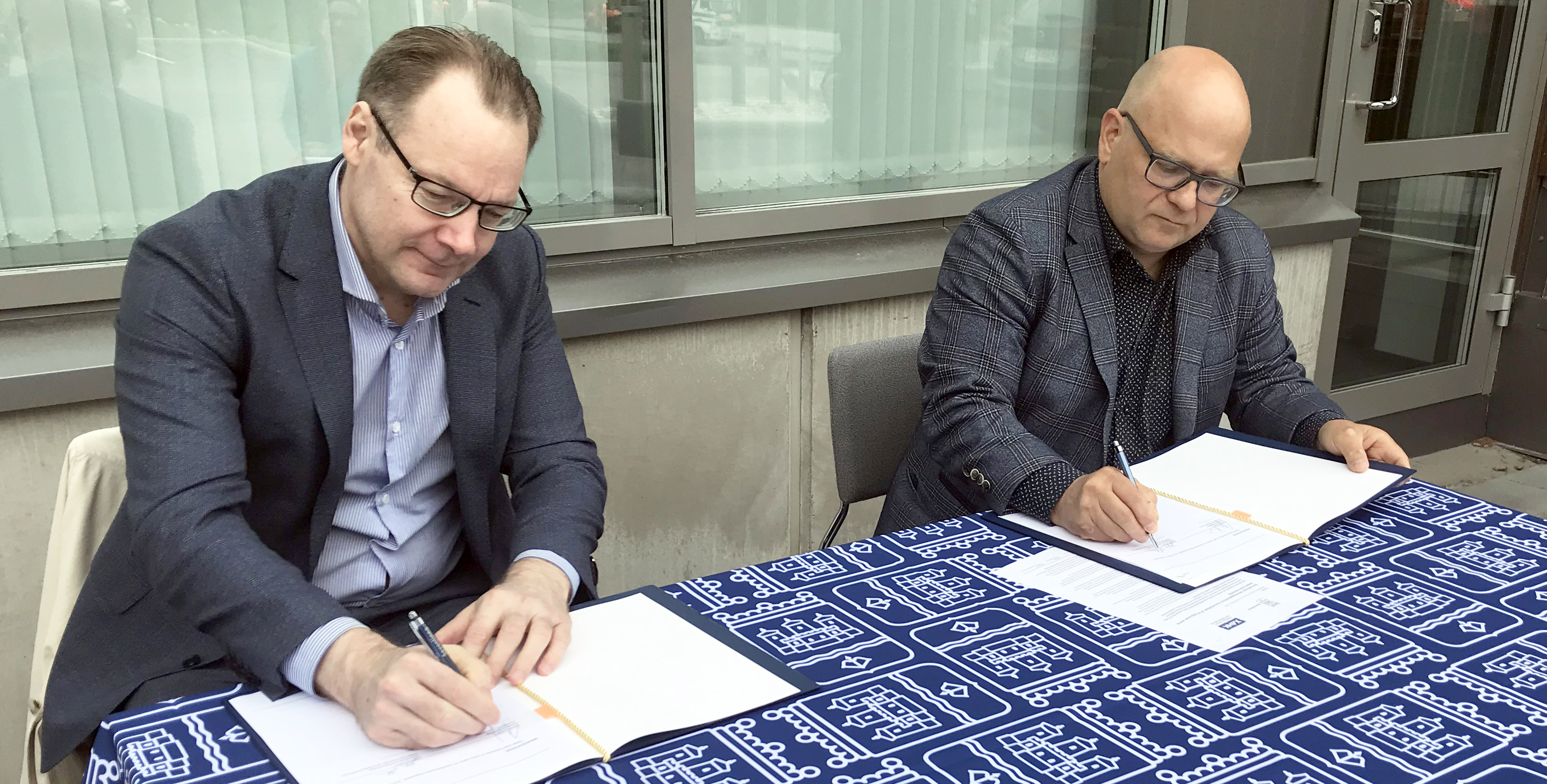 Kaupunginjohtaja Janne Laine ja Xamkin hallituksen puheenjohtaja Jyrki Koivikko allekirjoittivat aiesopimuksen Savonlinnan teknologiapuiston laajennusinvestoinnista.