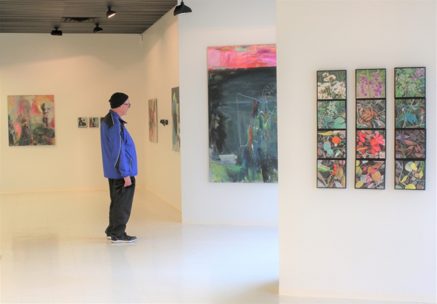 Kaija-Leena Hännisen kiinnostavat kollaasit hakevat uusia ulottuvuuksia ja nykivät katsojansa pohtimaan. Anna Armisen taidegrafiikan keinoin toteutetut figuratiiviset kuvat keskustelevat Asta Moron herkän ja naisellisen sävypaperille maalatun akvarellin kanssa. Tuomo Kukkosen raikkaat maisemalliset öljyvärimaalaukset akryylilevylle lähestyvät abstraktiota.