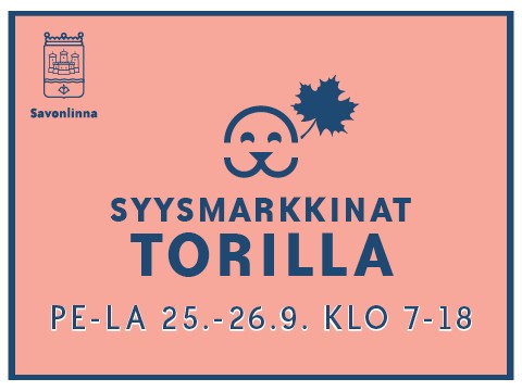 Perinteiset syysmarkkinat järjestetään Savonlinnan torilla pe-la 25.-26.9. Kauppiaat ovat paikalla klo 7-18.