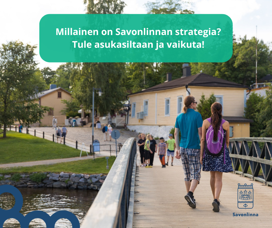maanantaina 12. toukokuuta 2025Kaupunkistrategia on kaupunkimme johtamisen keskeisin työväline niin luottamushenkilöille kuin henkilöstöllekin. Millainen on Savonlinnan tuleva strategia? Tule asukasiltaan ja vaikuta.