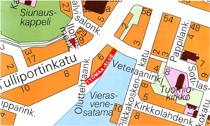 - Oluttehtaankadun vieressä kulkeva yksisuuntainen ajotie suljetaan.