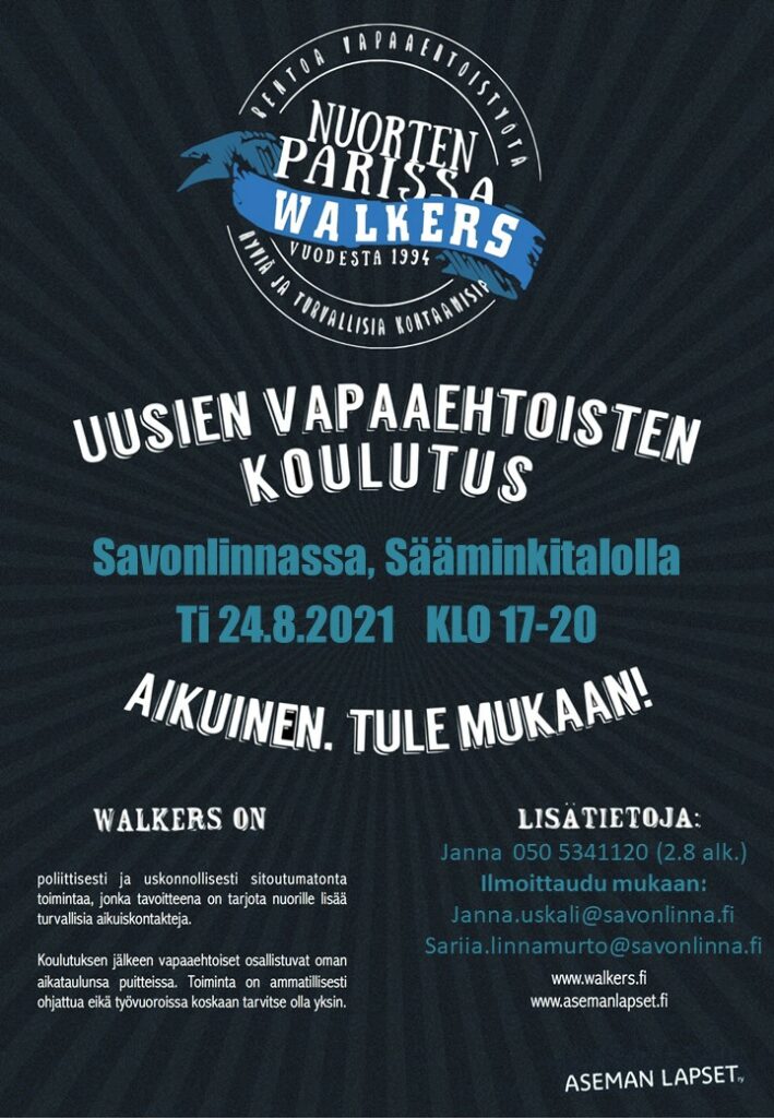 Tule Walkers-vapaaehtoiseksi nuorisotoimintaan, uusi koulutus 24.8.
